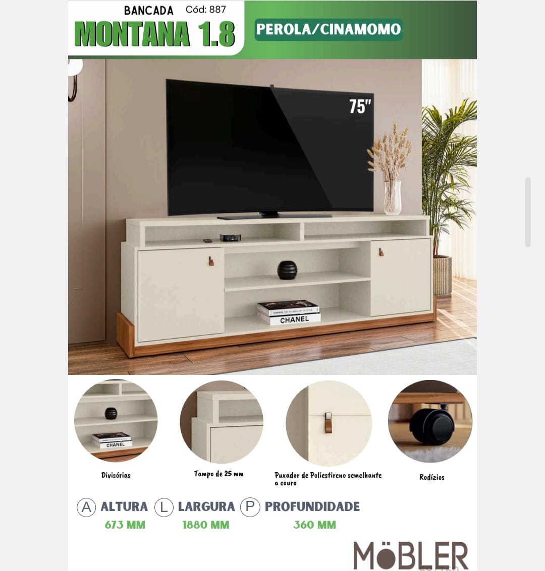 | Cor | CINAMOMO, PEROLA |