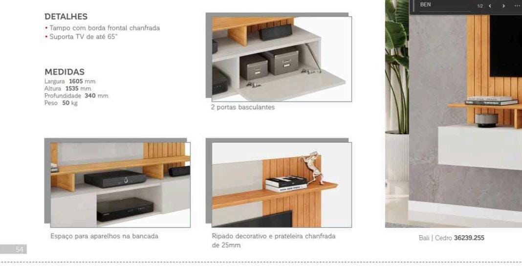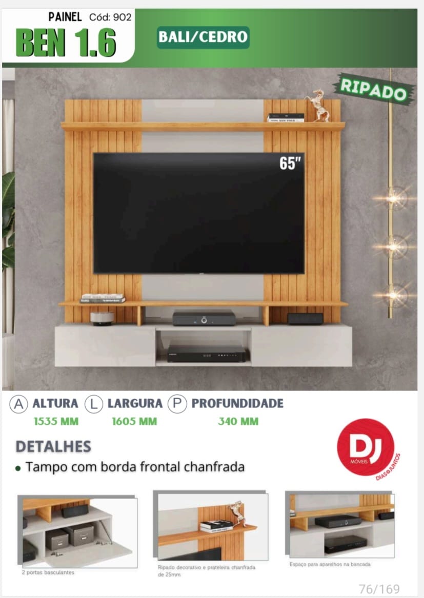 Altura 1535 mm, largura 1605 mm, profundidade 340 mm Detalhes, tampo com borda frontal chanfrada, DJ móveis