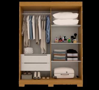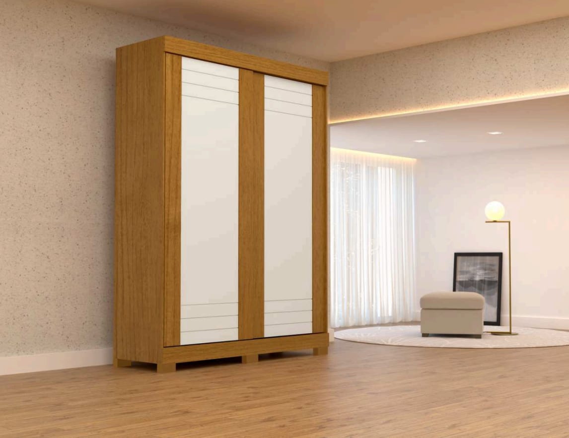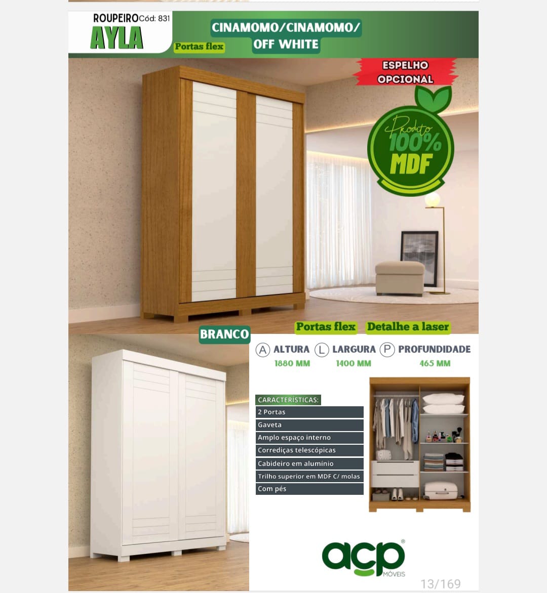 ALTURA 1880 MM / LARGURA 1400 MM / PROFUNDIDADE 465 MM / 100 % MDF 2 PORTAS GAVETAS AMPLO ESPAÇO INTERNO CORREDIÇAS TELESCOPICAS CABIDEIRO EM ALUMINIO TRILHO SUPERIOR EM MDF C / MOLAS COM PÉS COR CINAMO/ CINAMOMO OFF / WHITE BRANCO MARCA ACP MOVEIS