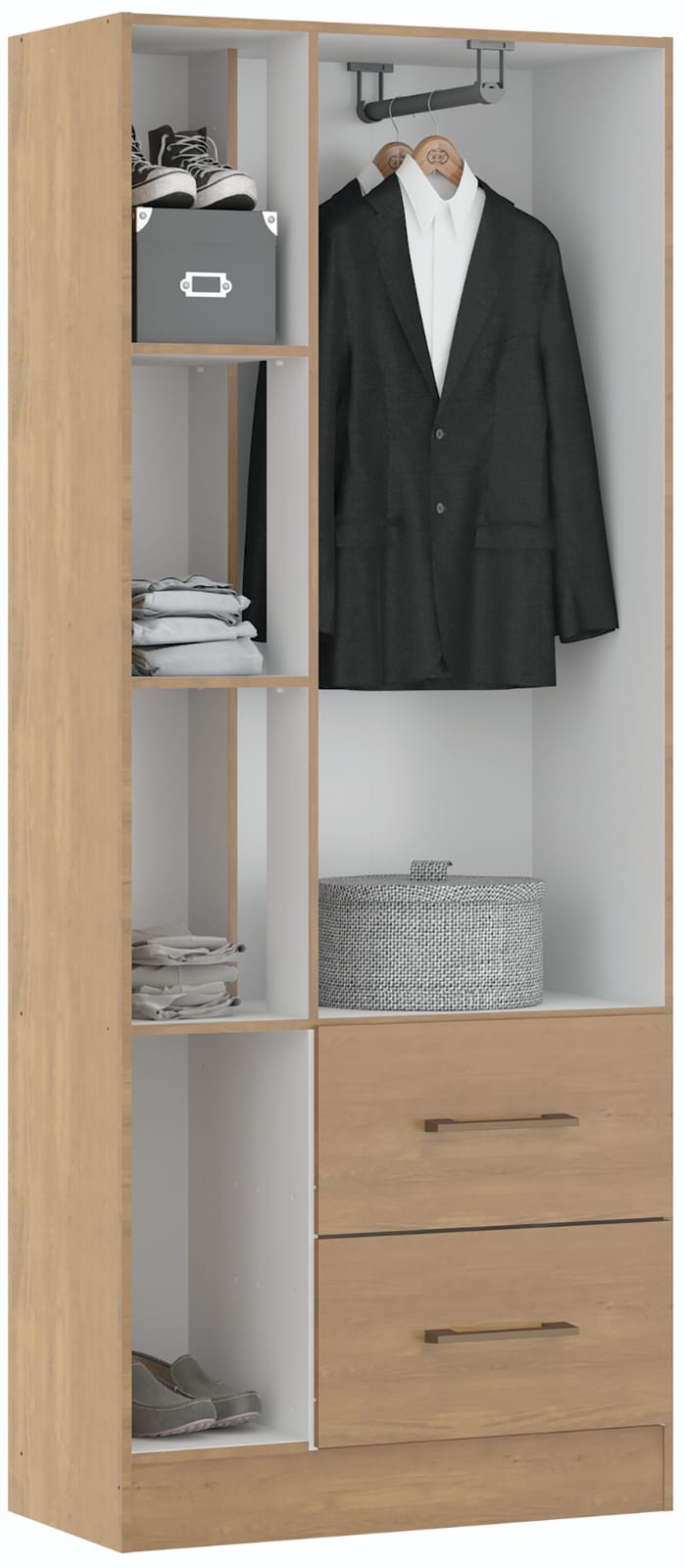Roupeiro Hades, ref: 8003, Largura: 700mAltura: 1720mm, Prof.: 355mm, Peso: 34Kg, Volumes: 1cores disponíveis:CDK + CHA, Cubagem: 0,059m³• corrediças plástica , SOLUZIONE