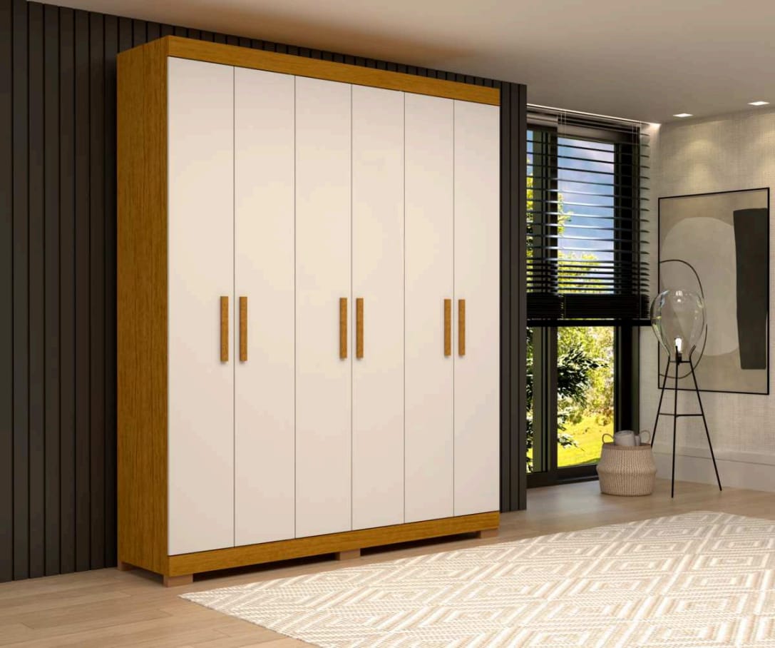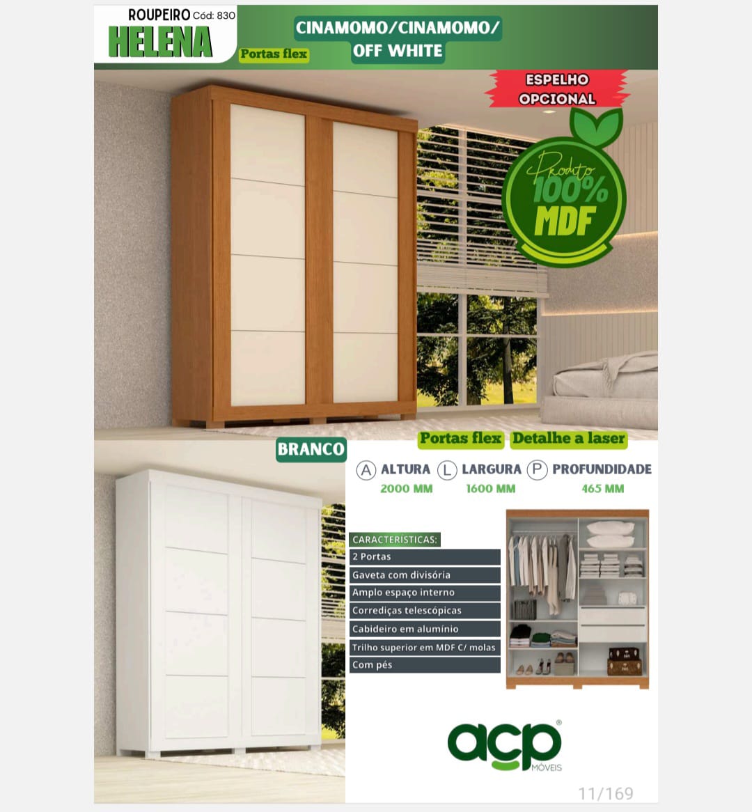 ALTURA 2000 MM / LAGURA 1600 MM / PROFUNDIDADE 465 MM / 100% MDF / 2 PORTAS GAVETAS COM DIVISORIA AMPLO ESPAÇO INTERNO CORREDIÇAS TELESCOPICAS CABIDEIRO EM ALUMINIO TRILHO SUPERIOR EM MDF C/ MOLAS COM PÉS COR CINAMOMO / CINAMOMO OFF WHITE / BRANCO MARCA ACP MOVEIS